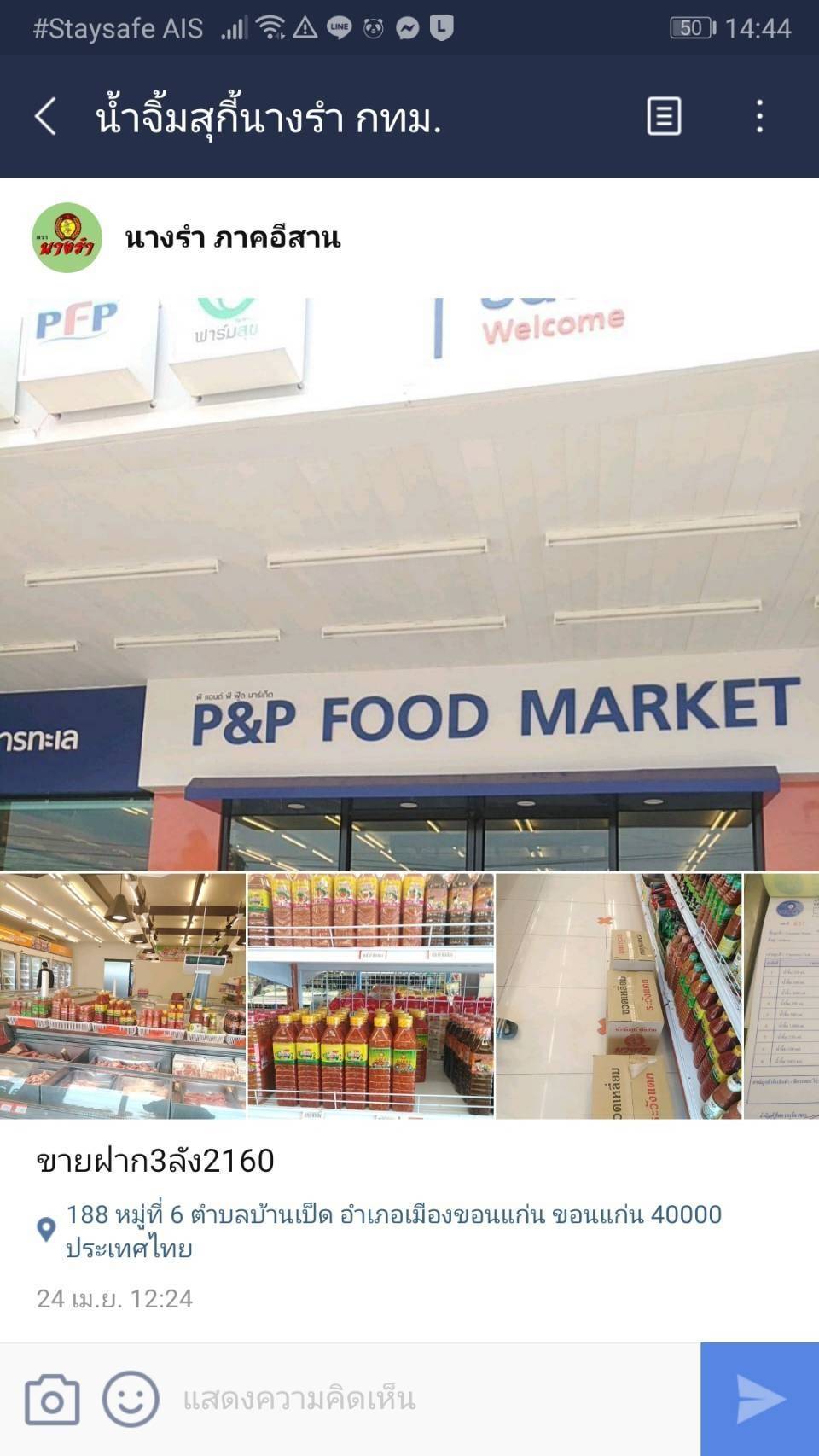 | ชื่อร้านค้า | p&p food |